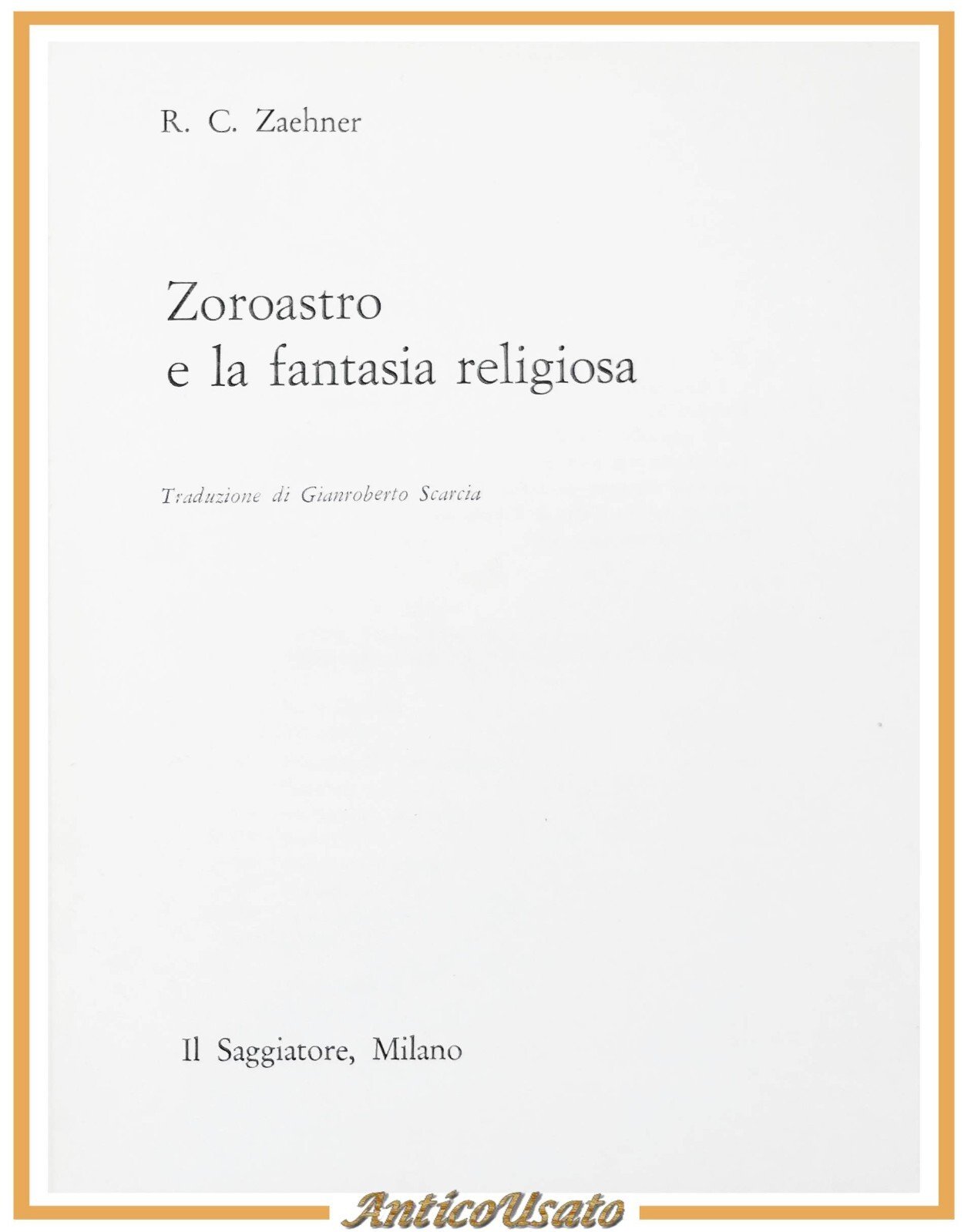 ZOROASTRO E LA FANTASIA RELIGIOSA di Zaehner 1962 Il Saggiatore libro portolano