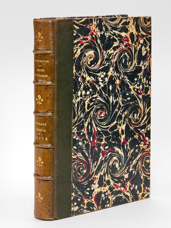 1 vol. grand in-8 reliure de l'époque demi-chagrin vert, dos à 5 nerfs dorés, Nouvelle Collection Illustrée, Calmann-Lévy, et Modern-Bibliothèque, Arthème Fayard, Paris, s.d. [ circa 1900 ], Contient : Theuriet : L'Oncle Scipion. Illustrations de Lobel Riche - Amours d'automne. Illustrations de P. Kauffmann - Gyp : Le Mariage de Chiffon. Illustrations de René Vincent - Totote. Illustrations d'après les aquarelles de Dutriac Bon exemplaire très bien relié, bien complet des belles couvertures illustrées en couleurs (dos lég. passé, très bon état par ailleurs).