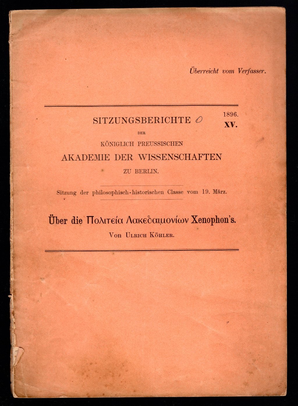 A proposito dello Stato Lacedaemoniano di Senofonte | Livres anciens et modernes | Kohler Ulrich, Kohler Ulrich