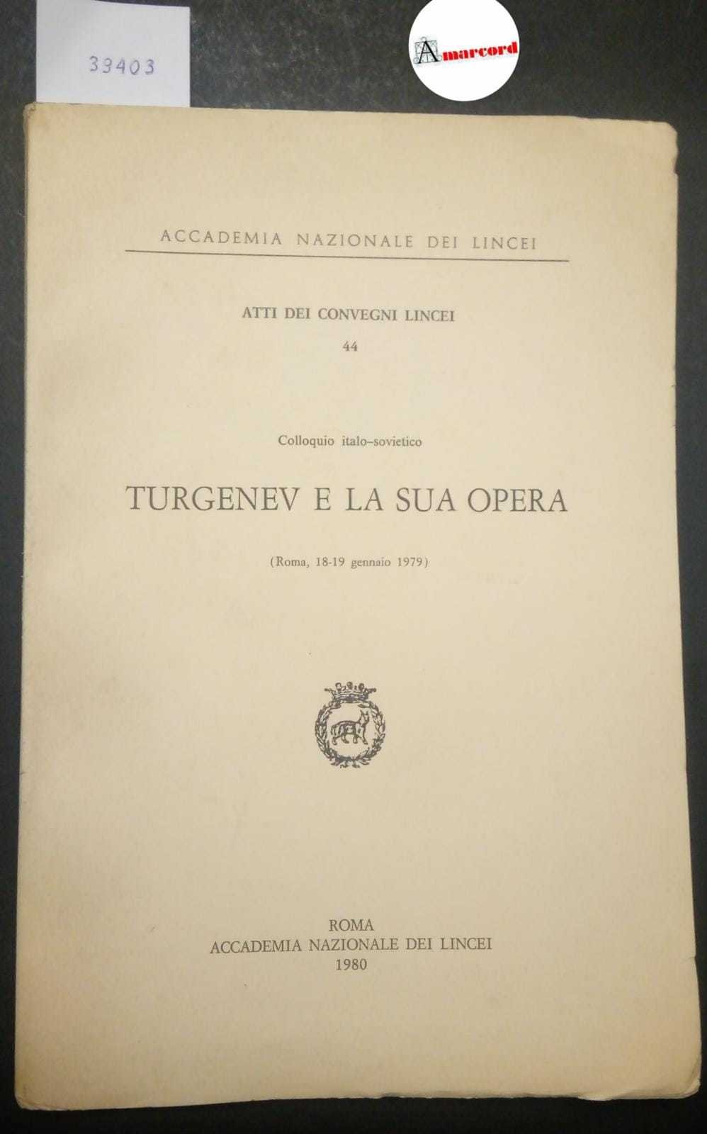 AA. VV. AA. VV., Turgenev e la sua opera, Accademia Nazionale dei Lincei, 1980. Roma, Accademia Nazionale dei Lincei 1980 italiano, in ottavo 150 39403