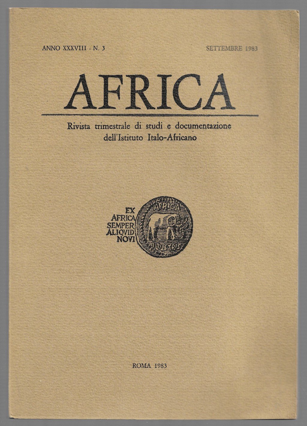 Africa - Rivista trimestrale di studi e documentazione dell'Istituto Italo-Africano Anno XXXVIII, n. 3, settembre 1983