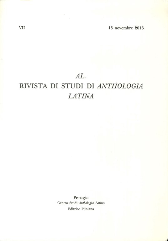 AL. Rivista di Studi di Anthologia Latina (2016). Vol. 7. 15 Novembre 2016, Selci di San Giustino, Pliniana, 2016