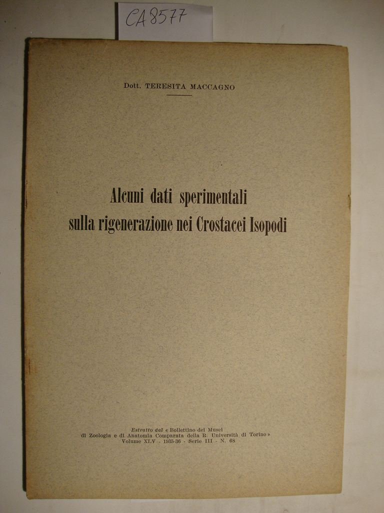 Alcuni dati sperimentali sulla rigenerazione nei Crostacei Isopodi | Livres anciens et modernes | Maccagno Paulucci Teresita