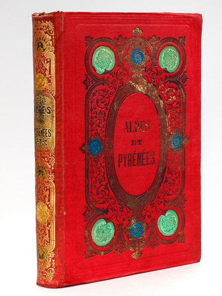 1 vol. grand in-8 cartonnage éditeir pleine percaline polychrome (rouge avec rehauts bleus et verts), toutes tranches dorées, Barbou Frères, Limoges, s.d. [ circa 1857 - 1858 ], 319 pp. et 7 lithographies hors texte (sur 8) Etat satisfaisant (manque la dernière lithographie des Pyrénées - Trou des Charbonniers - une planche débrochée, fente en garde mais dos collé) pour cette version dans un cartonnage peu commun. Prix en l'état pour cet exemplaire provenant de la belle bibliothèque pyrénéiste de Christian Galau (avec son ex-libris).