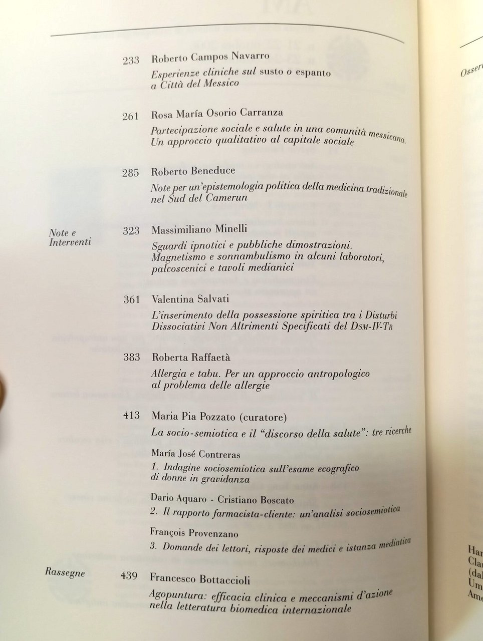 - Antropologia Medicina Italiana Etnopsichiatria Contemporanea, Malesseri Malattie Difesa Salute, Prevenzione Guarigione, Sciamani Medici, Pratiche Magico-Religiose, Terapie Rituali, Tecniche Corpo, Sogno Estasi Possessioni, Autoguarigione Autodistruzione, Potere Biomedico, Epistemologia, Seppilli Tullio Fitness Wellness Chirurgia Estetica, Medicina Cinese, Hikikomori, Magnetismo Tavoli Medianici, Socio semiotica