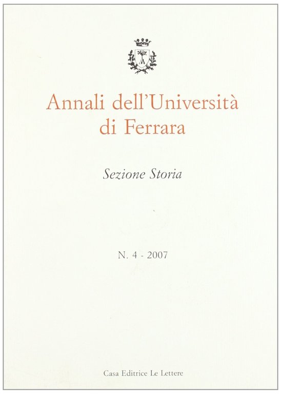 Annali dell'Università di Ferrara. Sezione storia (2007). Vol. 4, Firenze, Le Lettere, 2008