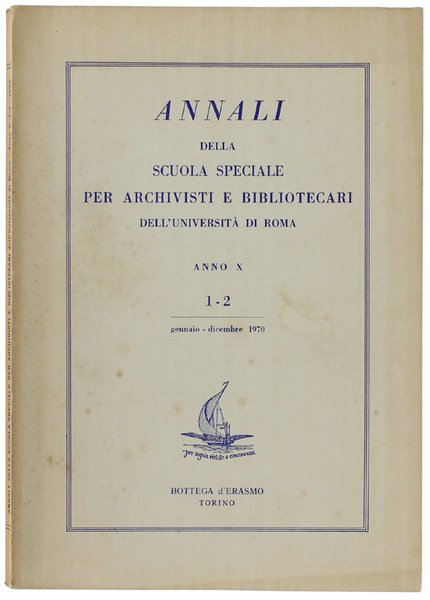 ANNALI DELLA SCUOLA SPECIALE PER ARCHIVISTI E BIBLIOTECARI DELL'UNIVERSITA' DI ROMA: Anno X - gennaio/dicembre 1970 N. 1-2.