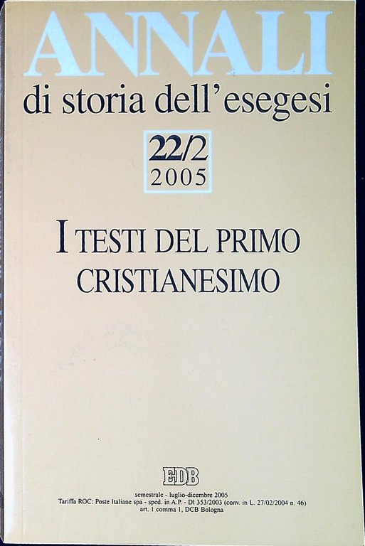 Annali di storia dell'esegesi 22/2 I testi del primo cristianesimo