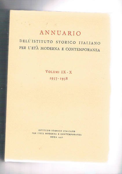 Annuario dell'istituto storico italiano per l'età moderna e contemporanea vol. IX-X 1957-1958. Origine e sviluppo della rappresentanza stabile pontificia in Venezia 1485-1533 di F. Gaeta; origine e carattere della nunziatura di Napoli 1523-1569 di P. Villani; ecc.