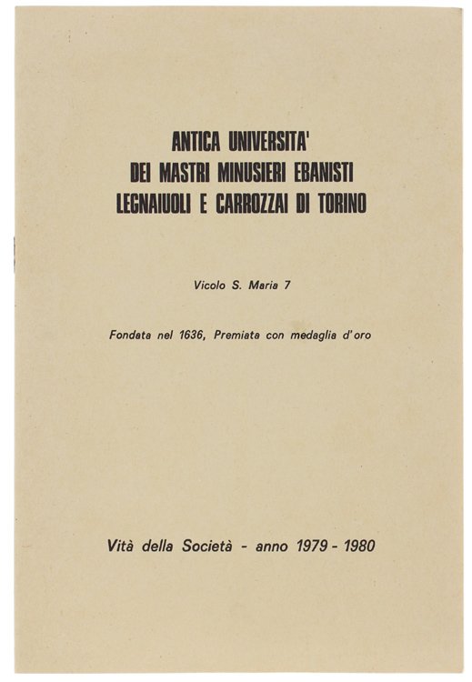 ANTICA UNIVERSITA' DEI MASTRI MINUSIERI EBANISTI LEGNAIUOLI E CARROZZAI DI TORINO. Vita della Società anno 1979-1980. | Livres anciens et modernes |