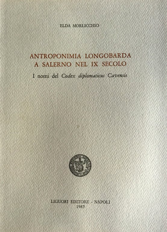ANTROPONIMIA LONGOBARDA A SALERNO NEL IX SECOLO: I NOMI DEL CODEX DIPLOMATICUS CAVENSIS | Livres anciens et modernes | Elda Morlicchio