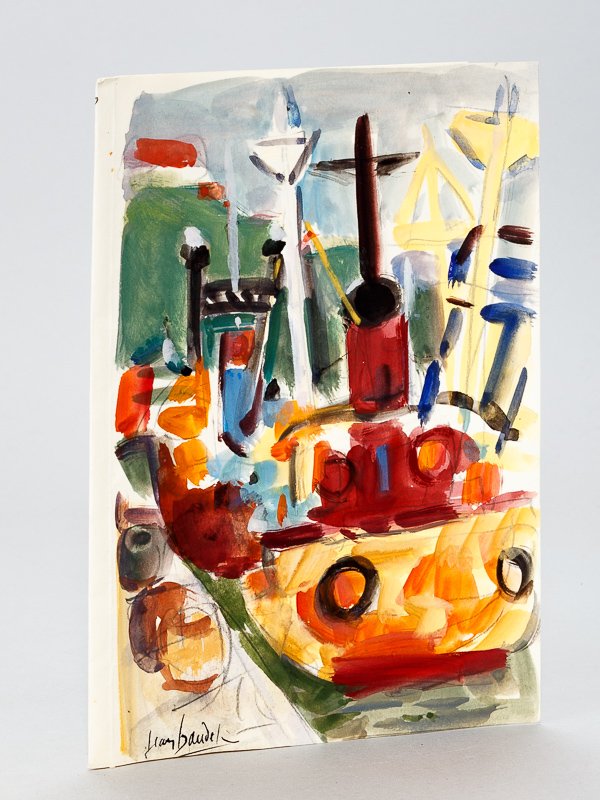 Aquarelle signée sur carte avec voeux manuscrits de Jean Baudet
