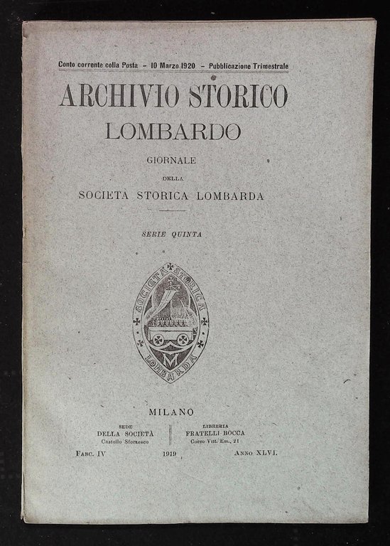 - Milano, Società Storica Lombarda / Libreria Fratelli Bocca