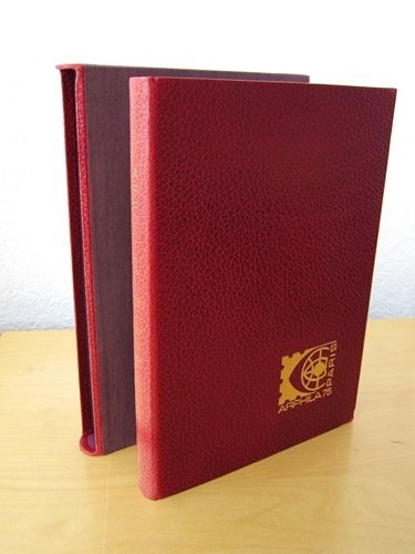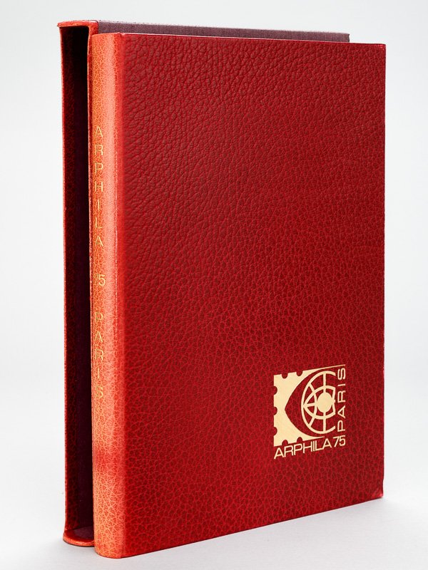 1 vol. in-4 reliure plein maroquin rouge sous étui bordé signée Reliural, Musée de la Poste, Paris, 1975, contenant l'ensemble des timbres, oblitérations premier jour et documents officiels (Sisley, Philippe de Champaigne, Arp, Mathieu, etc.) réalisés à l'occasion de Exposition philatélique internationale de 1975 Magnifique publication de luxe en bel état.