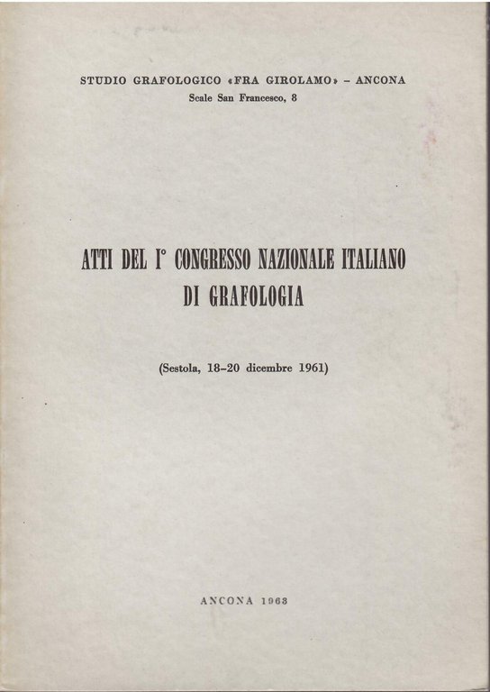 ATTI DEL I° CONGRESSO NAZIONALE ITALIANO DI GRAFOLOGIA | Livres anciens et modernes |