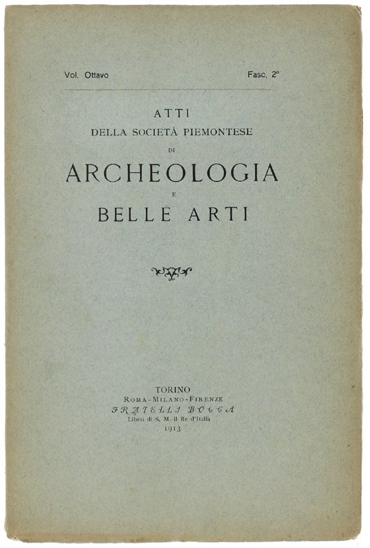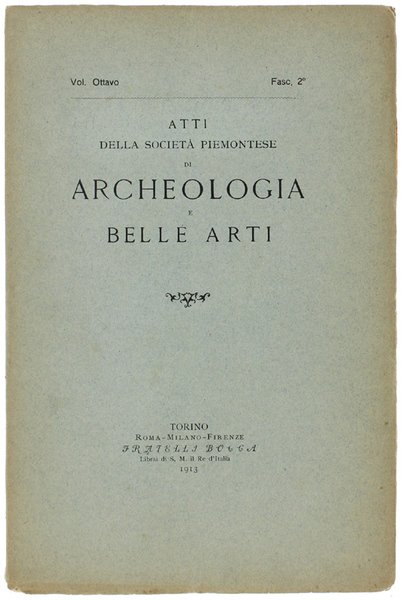 ATTI DELLA SOCIETA' DI ARCHEOLOGIA E BELLE ARTI PER LA PROVINCIA DI TORINO. Volume Ottavo - Fascicolo 2. | Livres anciens et modernes | Società Piemontese Di Archeologia E Belle Arti.