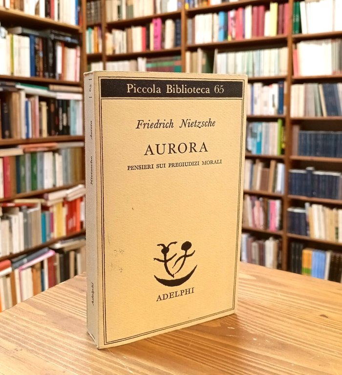 "Piccola Biblioteca Adelphi"; prima edizione, 1978 - Brossura editoriale con bandelle, xii-283 pagine. Nota introduttiva di Giorgio Colli. Ottima copia -- Aurora è l'opera con cui Nietzsche si avvia verso quella «guarigione», che viene a coincidere con la sua perfetta maturità, ed è anche l'opera in cui diventa centrale la «passione della conoscenza», a cui Nietzsche si abbandonerà fino all'ultimo. Lo stile aforistico raggiunge qui uno dei suoi apici: con le sue antenne ipersensibili Nietzsche si avvicina ai temi più vari: dal cristianesimo ai valori morali moderni, dalla décadence alla «cattiva coscienza», dalla civiltà greca al romanticismo tedesco. E ce li presenta col gesto più fermo e insieme delicato, in un libro dove - egli stesso ci consiglia - si può «metter la testa dentro e sempre di nuovo fuori, senza trovare intorno a sé nulla di consueto».