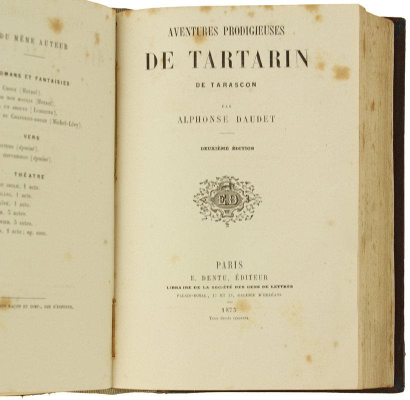AVENTURES PRODIGIEUSES DE TARTARIN DE TARASCON. [1873: seconde édition] + COUPS DE FUSIL ET COUPS DE VENT, [1868: édition originale]. | Livres anciens et modernes | Daudet Alphonse - Gaillard Henry.