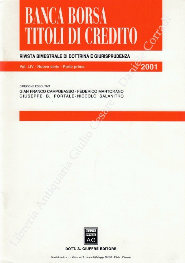 Banca borsa e titoli di credito. Rivista di Dottrina e Giurisprudenza. Fondata da Francesco Messineo e Giacomo Molle. Anno LIV - Nuova Serie - 2001