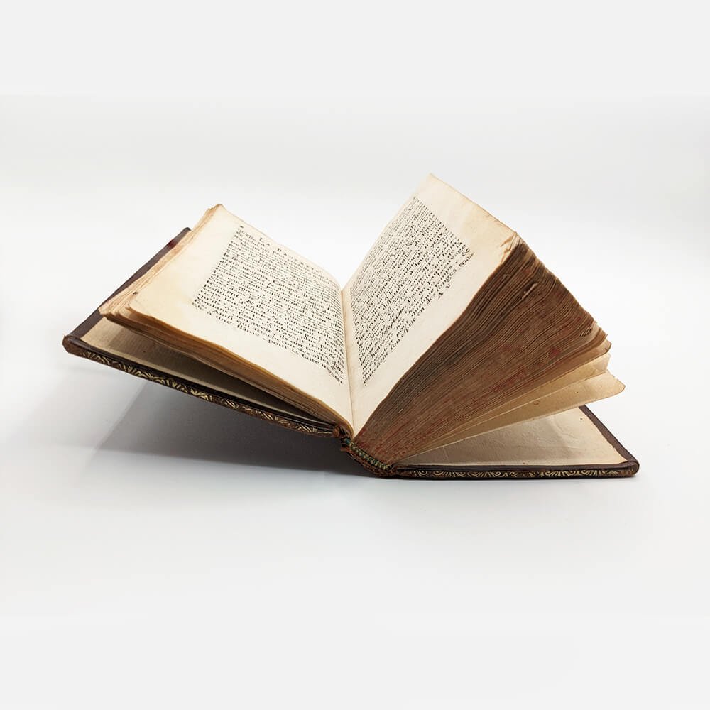 In-12, 154x93mm. Endpapers, Frontispiece, [9] ff. 340 pp. Endpapers