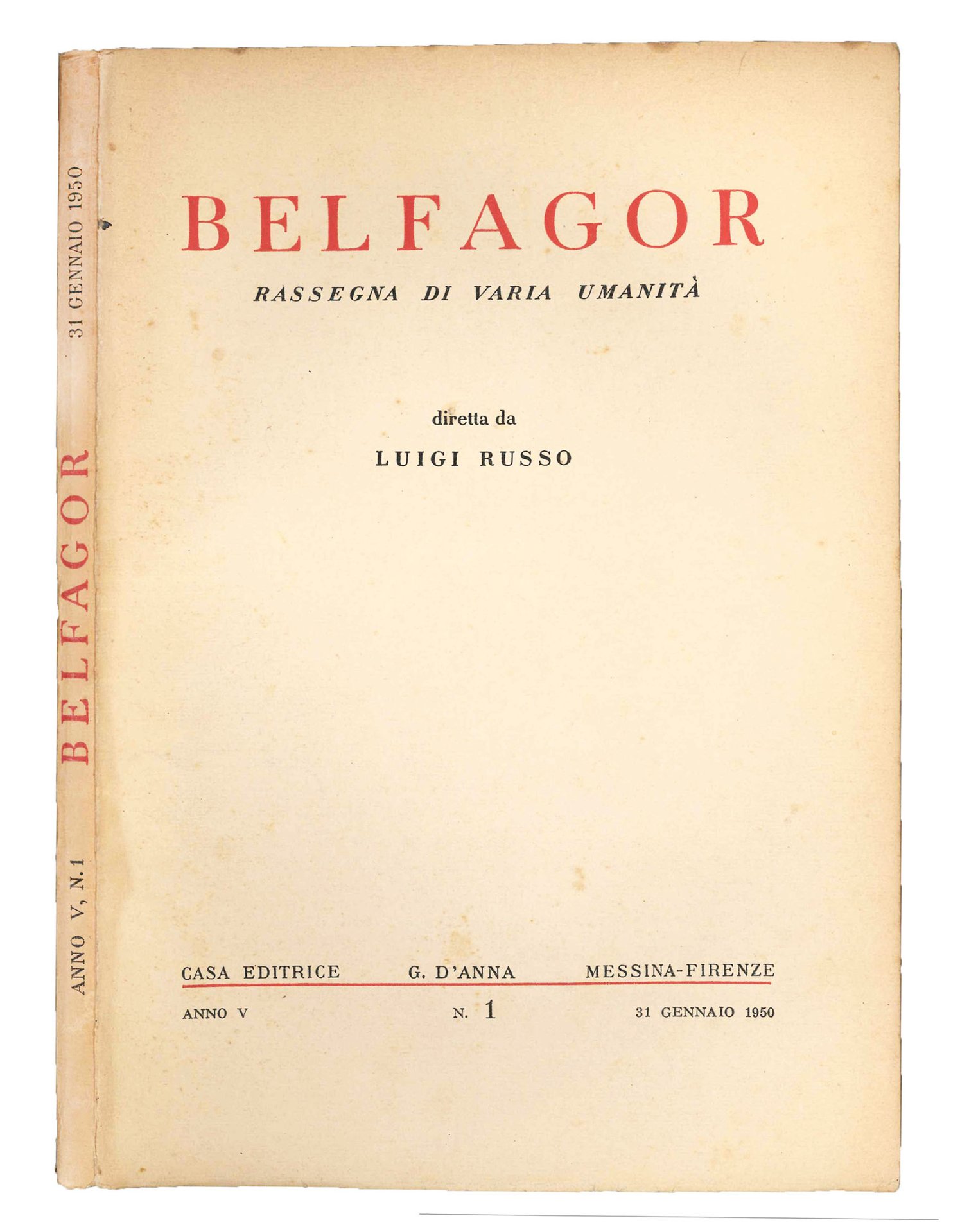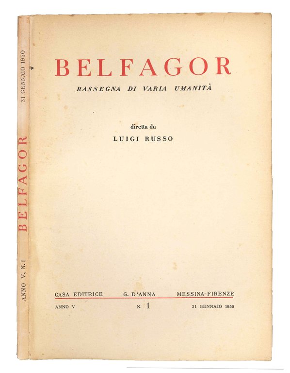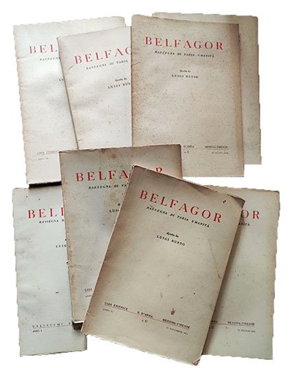 Belfagor. Rassegna di varia umanità. Lotto di 12 numeri (anno I, nr. 1, 4; anno V, nr. 1; anno VI, nr. 3, 4, 6; anno VII, nr. 1, 2, 4, 5, 6; anno VIII, nr. 1). | Livres anciens et modernes | RUSSO, Luigi