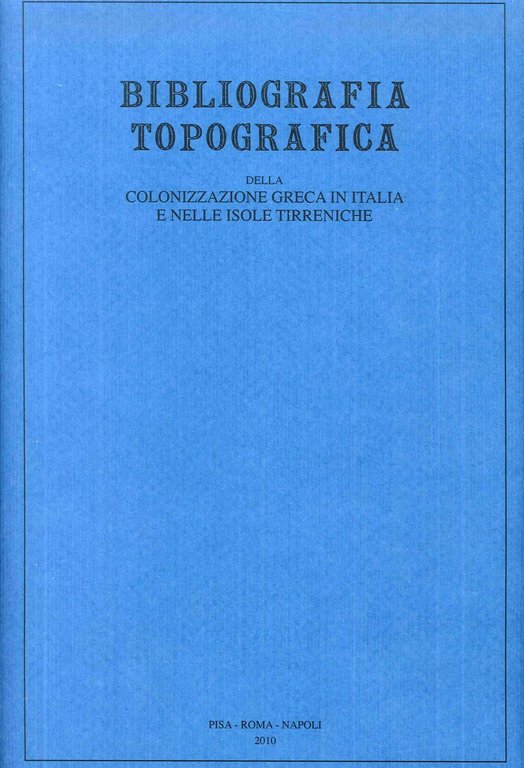 A cura di C. Michelini e Cassanelli C. Napoli, 2010; ril., pp. 804, ill. b/n, tavv. b/n, cm 16,5x24. (Bibliografia Topografica della Colonizzazione Greca in Italia e nelle Isole Tirreniche. 18).