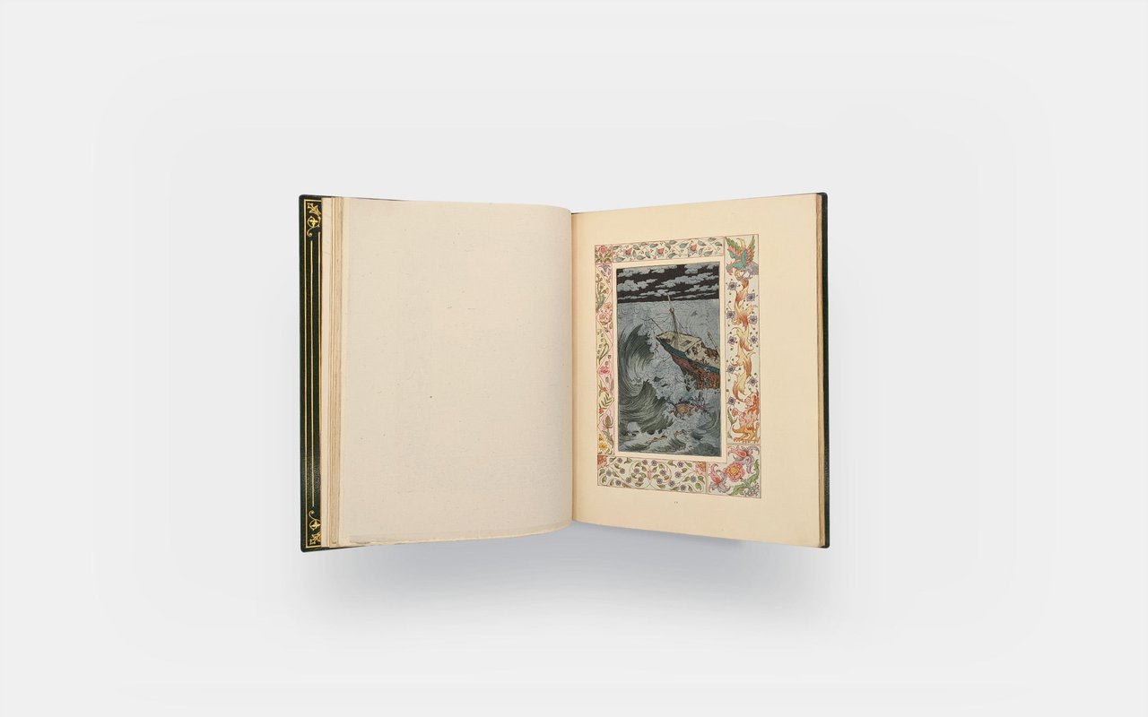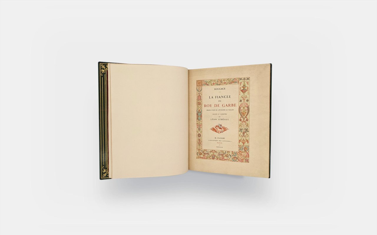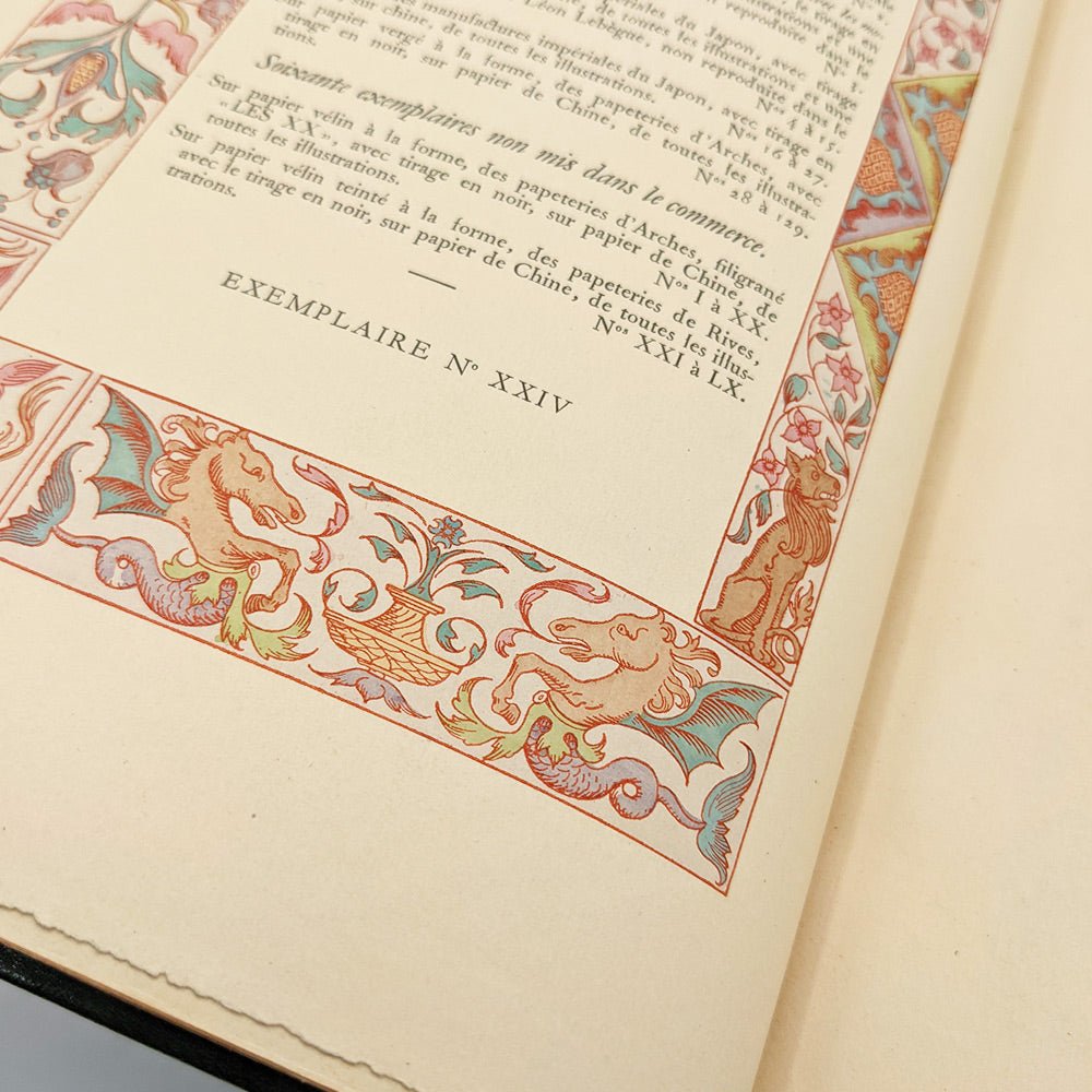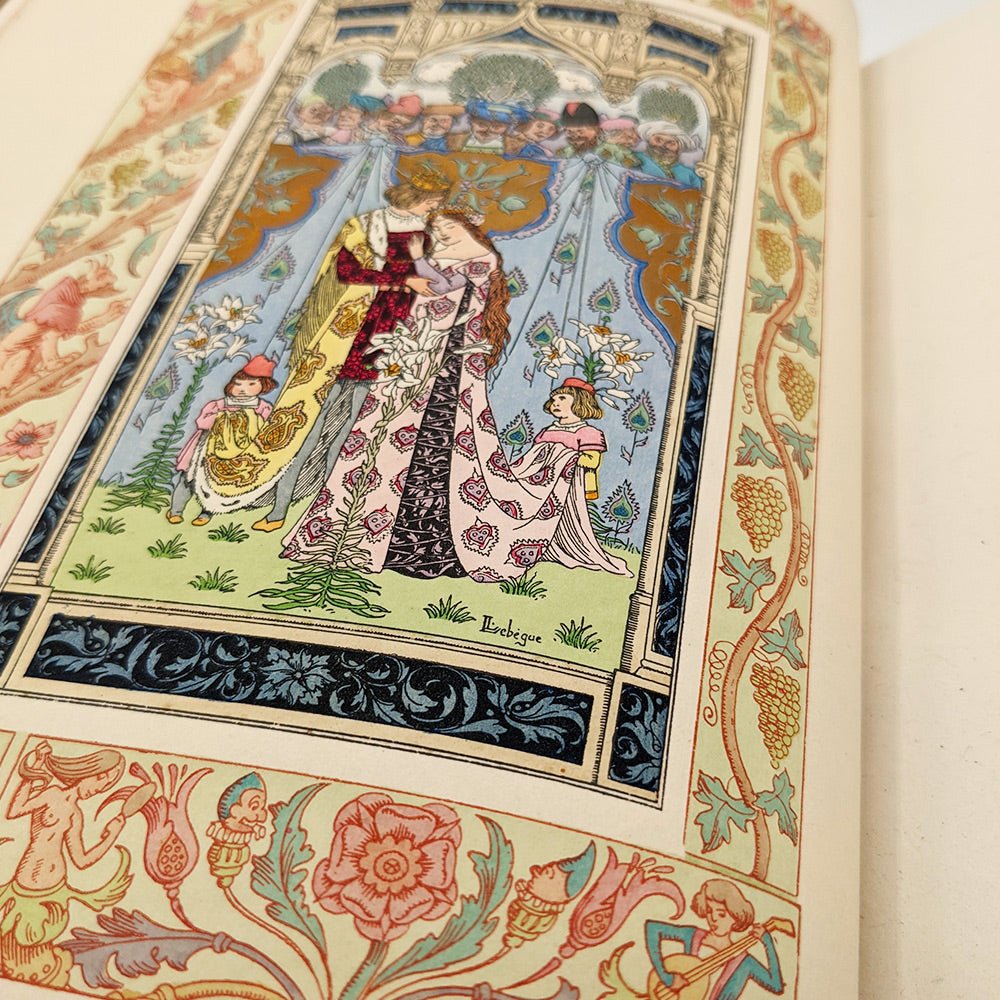 Illustrations watercolored and reworked in gold, including 6 full-page, by Léon Lebègue.