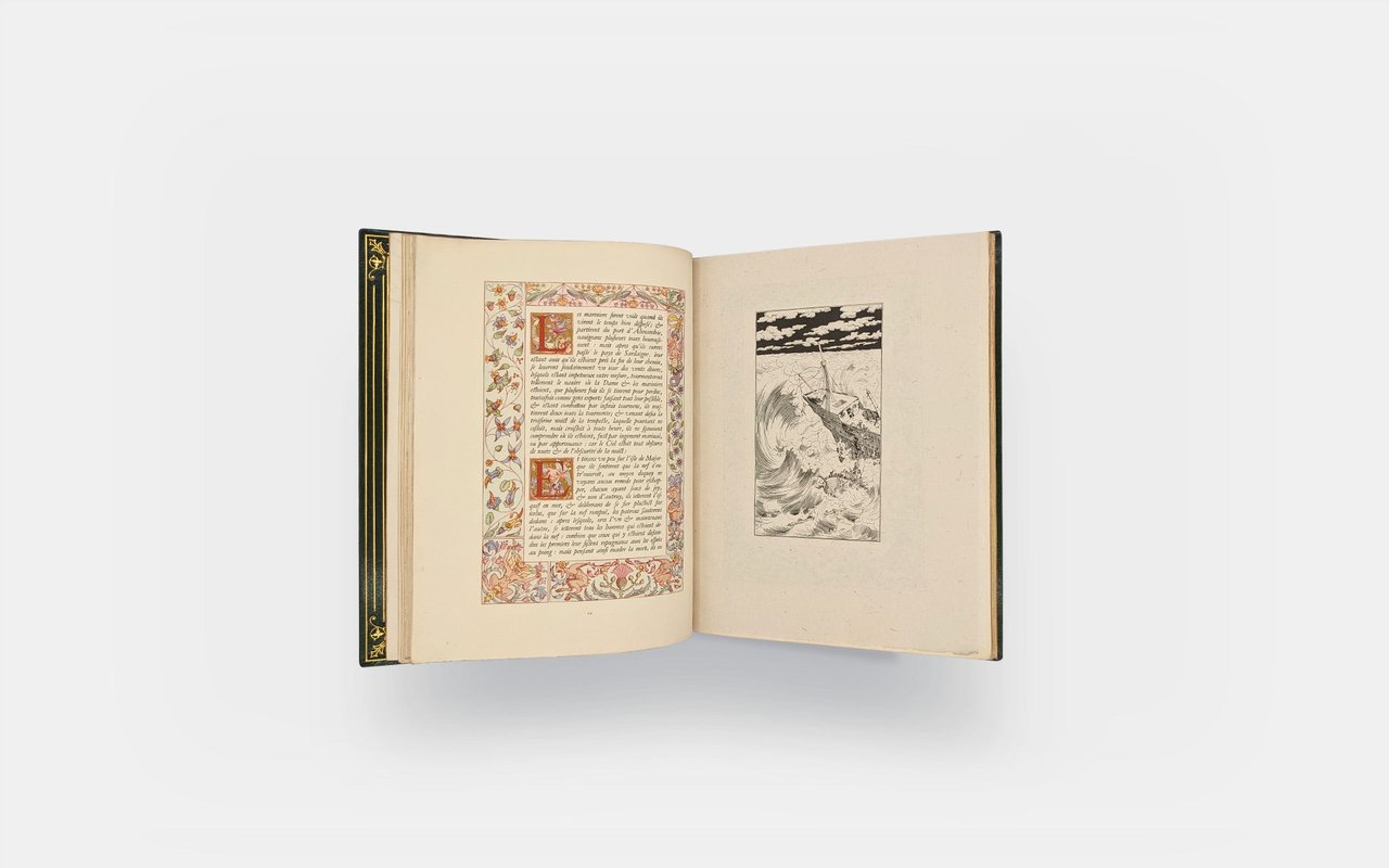 Limited edition of 189 copies; one of 40 on vellum paper tinted on the form, from the Rives paper mills (n° XXIV), with the black print, on China paper, of all the illustrations. Each page is decorated with a figure, initial or frame by the artist.