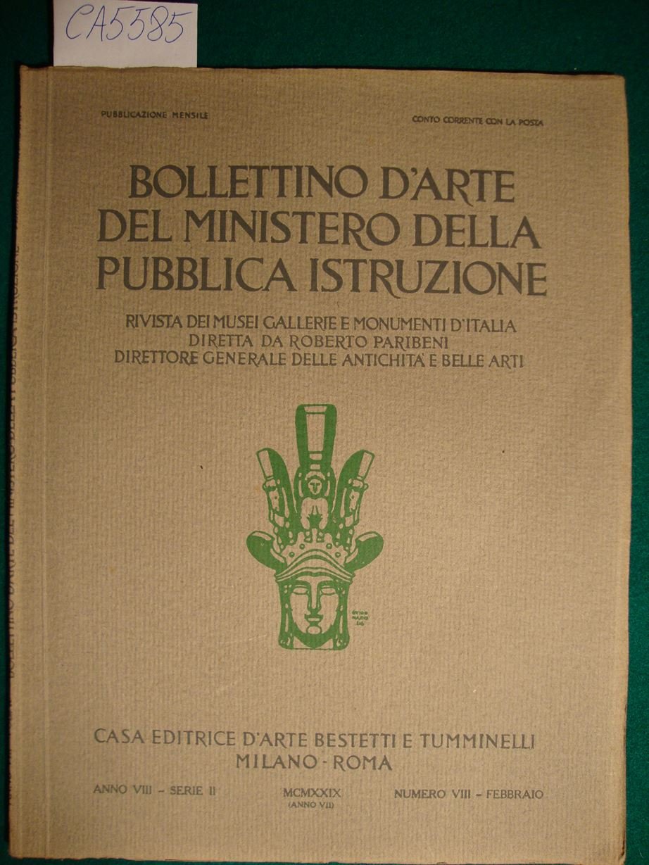 Bollettino d'arte del Ministero della Pubblica Istruzione - Anno VIII - Serie II - Numero VIII - Febbraio | Livres anciens et modernes | (Autore Non Indicato)