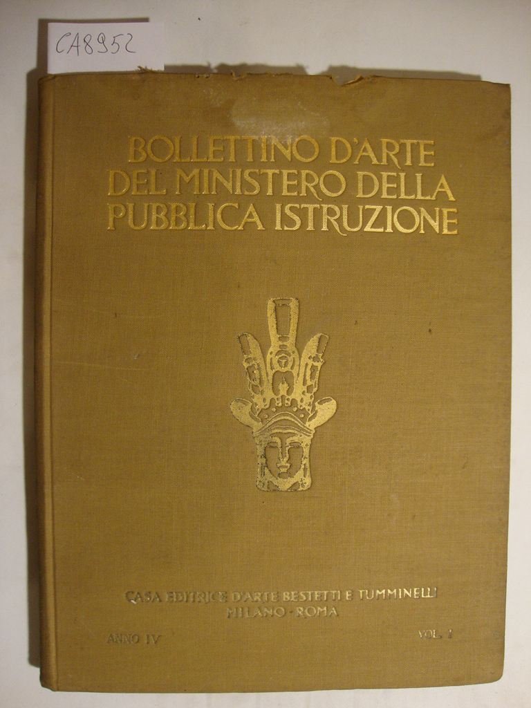 Bollettino d'arte del Ministero della Pubblica Istruzione - Rivista dei musei e monumenti d'Italia diretta da Arduino Colasanti (Direttore Generale delle Antichità e Belle Arti) - Anno IV - 1924 - Volume Primo | Livres anciens et modernes | (Autore Non Indicato)