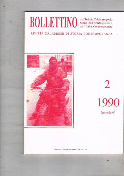 Bollettino dell'Istituto Calabrese per la storia dell'antifascismo e dell'Italia contemporanea. Semestrale. Disponiamo del n°2 1990, fasc. 9°. Si segnalano: Omertà e ndrangheta nel reggino: un problema cronologico; Podestà in S. Pietro in Guarano; L'anarchico A. Borghi in Calabria; ecc… | Livres anciens et modernes | Masi Giuseppe, Dir.