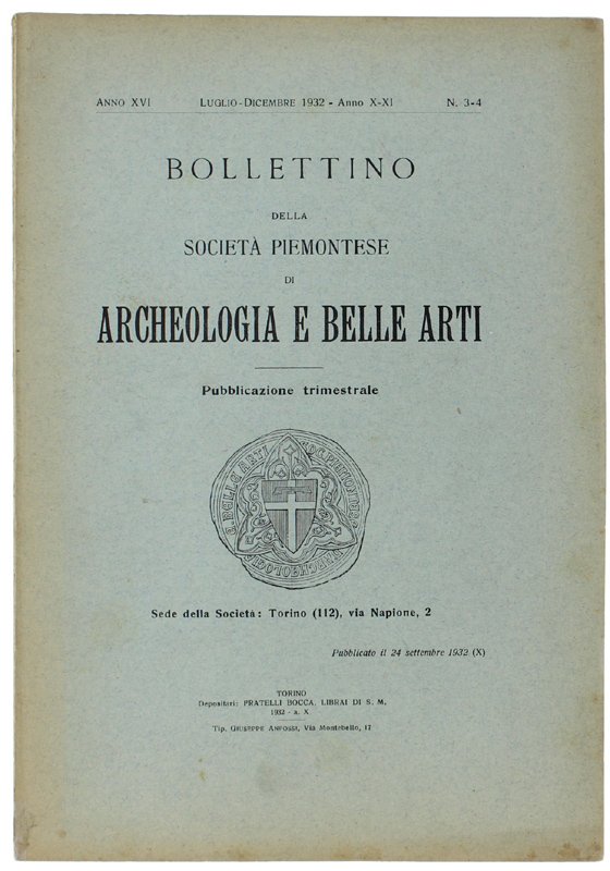 BOLLETTINO DELLA SOCIETA' PIEMONTESE DI ARCHEOLOGIA E BELLE ARTI - XVI n. 3-4 - Luglio-Dicembre 1932. | Livres anciens et modernes | Società Piemontese Di Archeologia E Belle Arti