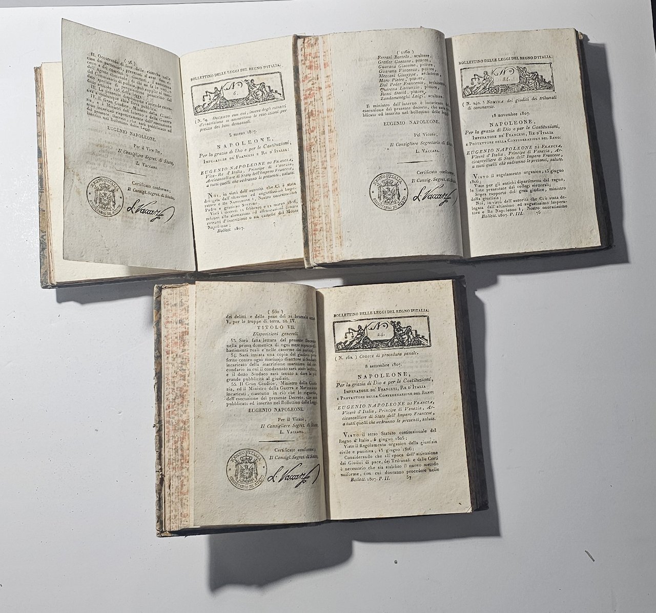 - bollettino delle leggi, regno d italia, napoleone, eugenio napoleone, 1807, diritto napoleonico, regno italico, codici napoleonici, decreti napoleonici, legislazione italiana, storia del diritto, storia italiana, milano reale stamperia, tribunali, giustizia, commercio, procedura penale, napoleonica, libro antico, pergamena coeva