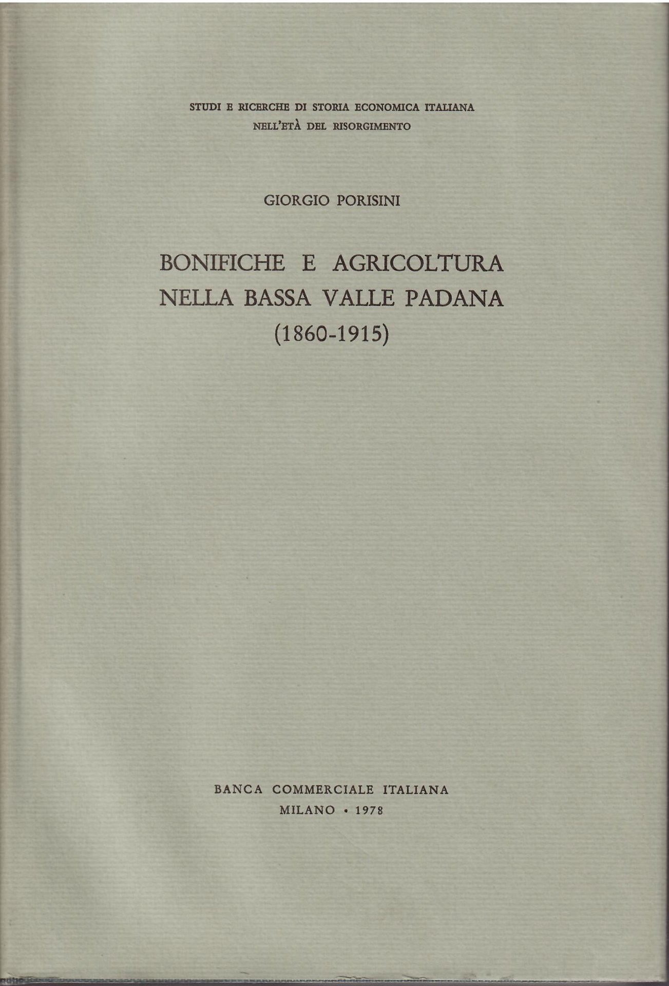 BONIFICHE E AGRICOLTURA NELLA BASSA VALLE PADANA ( 1860 - 1915 ) | Livres anciens et modernes | Giorgio Poridini