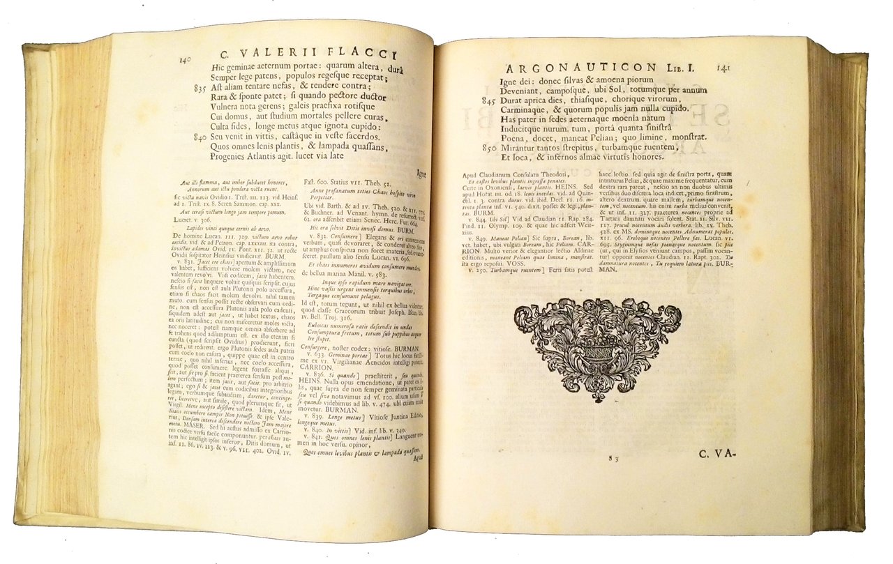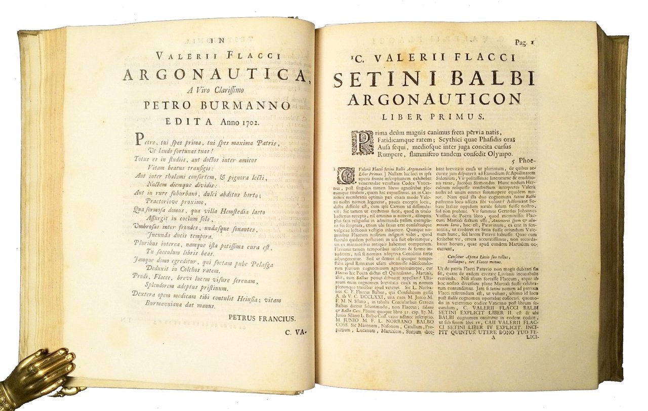 C. Valerii Flacci Setini Balbi Argonauticon libri octo, cum notis integris Ludovici Carrionis, Laurentii Balbi Liliensis, Justi Zinzerlingi, Christophori Bulaei, Gerardi Vossii et Nicolai Heinsii, et selectis Aegidii Maserii, Joannis Baptistae Pii, Joannis Weitzii, et aliorum, curante Petro Burmanno, qui & suas adnotationes adjecit | Livres anciens et modernes | Valerius Flaccus, Caius (Flacco, Gaio Valerio)