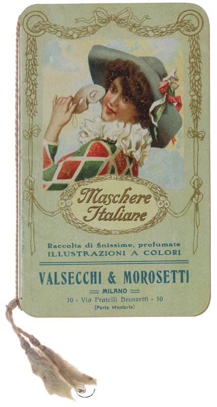 CALENDARIETTO DA BARBIERE "MASCHERE ITALIANE" 1909 Raccolta di finissime, profumate illustrazioni a colori [mm 115x70]