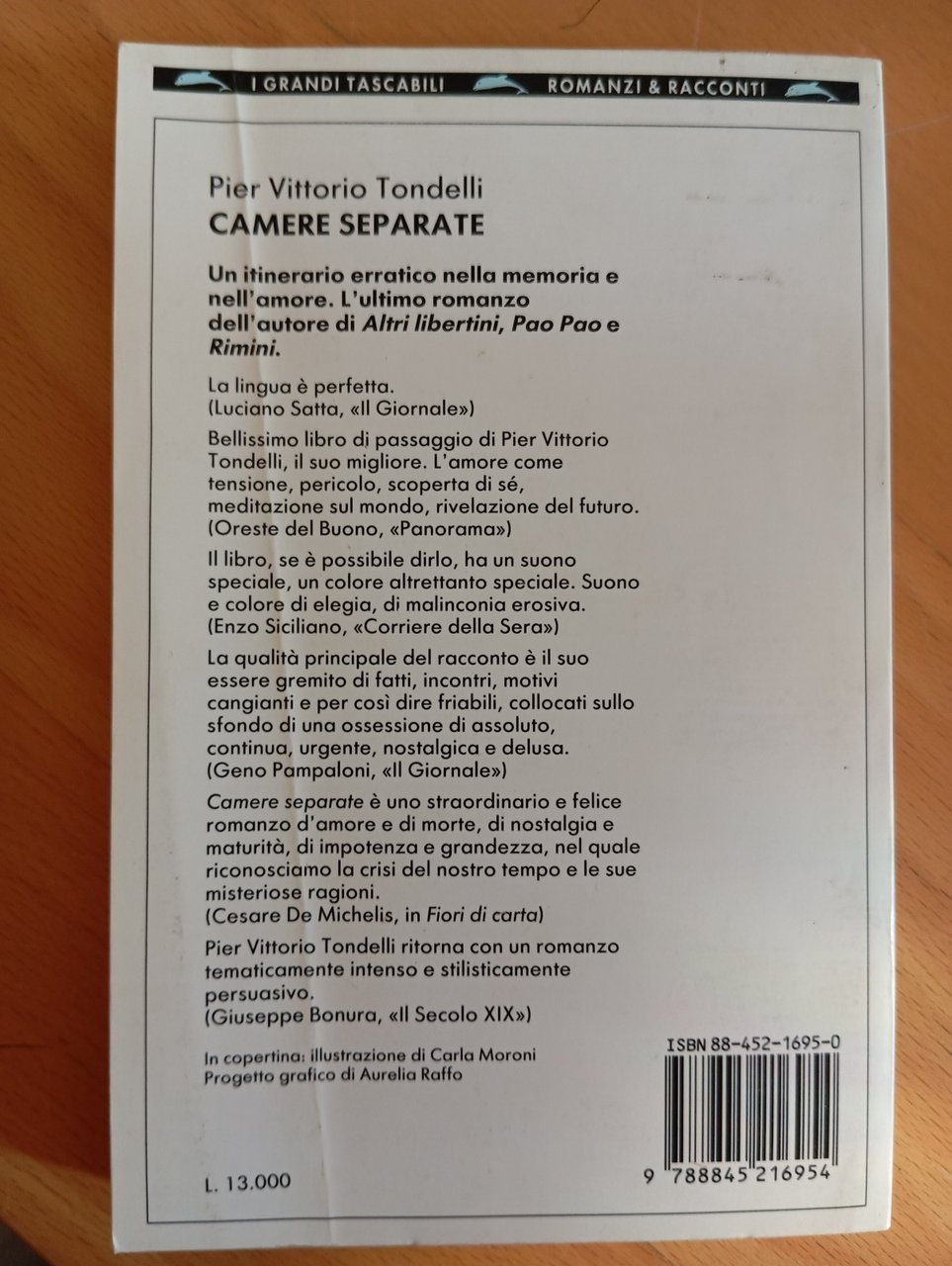 Camere separate, Pier Vittorio Tondelli, Bompiani, 1998