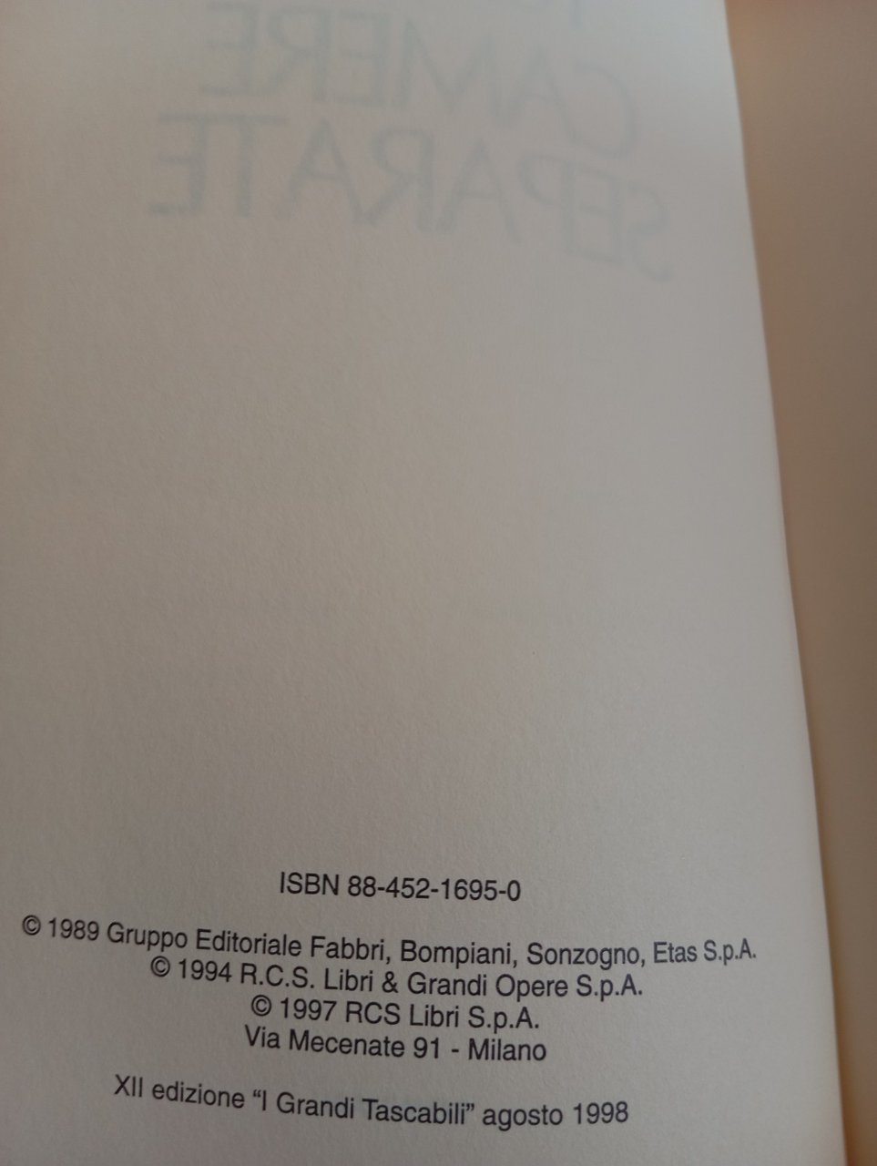 Camere separate, Pier Vittorio Tondelli, Bompiani, 1998 | Livres anciens et modernes |
