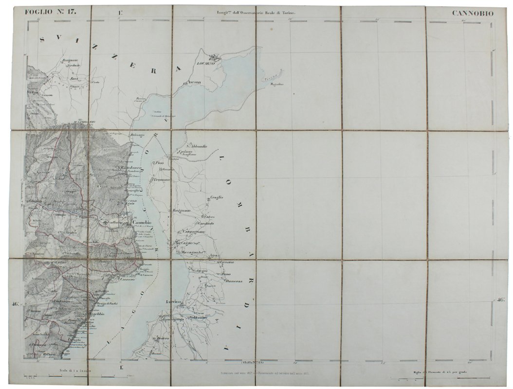 CANNOBBIO. Foglio N° 17. Scala 1:50.000. Longitudine dall'Osservatorio Reale di Torino. | Livres anciens et modernes | Real Corpo Dello Stato Maggiore.
