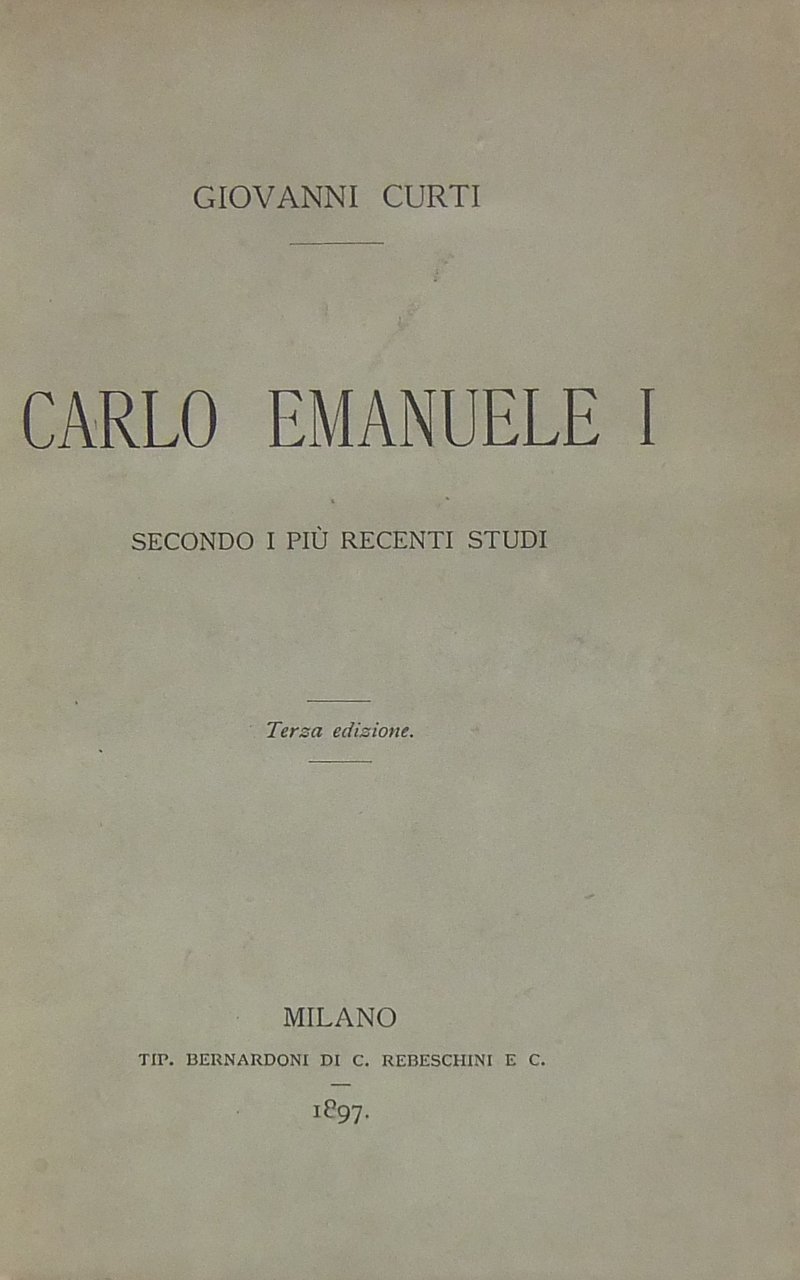 Carlo Emanuele I secondo i più recenti studi | Livres anciens et modernes | Curti Giovanni