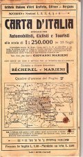 Carta geografica con percorsi per automobilisti, ciclisti e turisti, in scala 1:250.000. Litografia a colori. Non indicata la data di edizione circa anni '20. Strappo nel foglio. Copia buona.