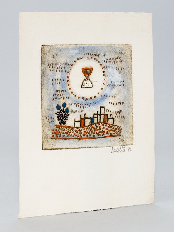 carte de voeux pour 1977, bois en 4 couleurs au format 12 x 12 (22,5 x 17,5 cm en marges) signée au crayon Bel exemplaire en très bel état. Cette belle carte est signalée dans le catalogue "Louttre B. L'oeuvre gravé 1960 1983" au numéro 273, qui indique 60 épreuves et 6 épreuves d'artistes et 3 E.E.