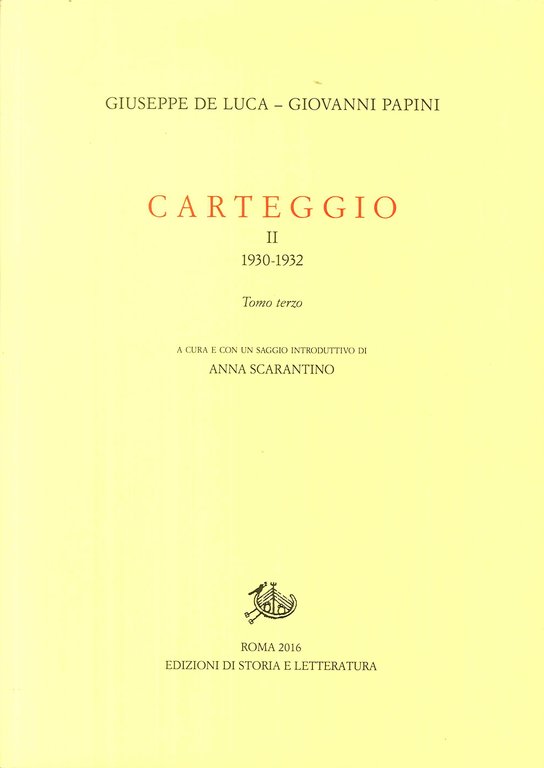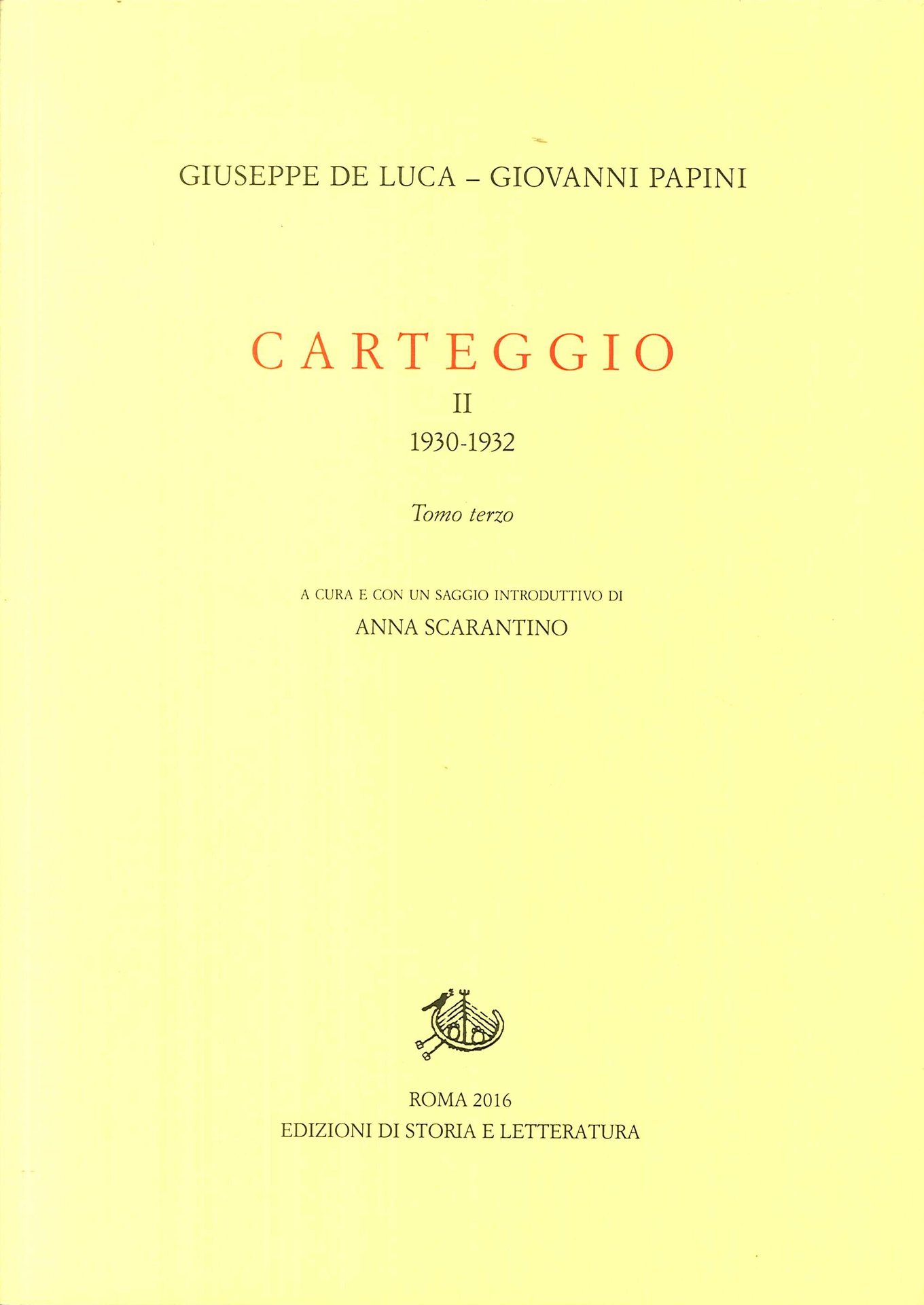 Carteggio. Vol. 2/3: 1930-1932 | Livres anciens et modernes | Papini Giovanni, De Luca Giuseppe, Scarantino A., Papini Giovanni, De Luca Giuseppe, Scarantino A.