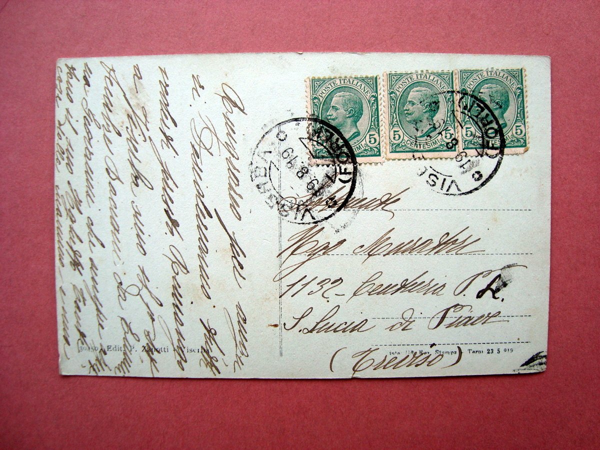 Viserba, 1919; cm 9x13,5; fotocartolina b/n, (virata al verde) animat, viaggiata, scritta fronte e retro.