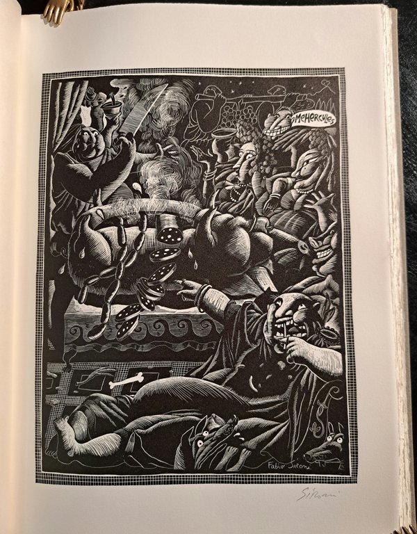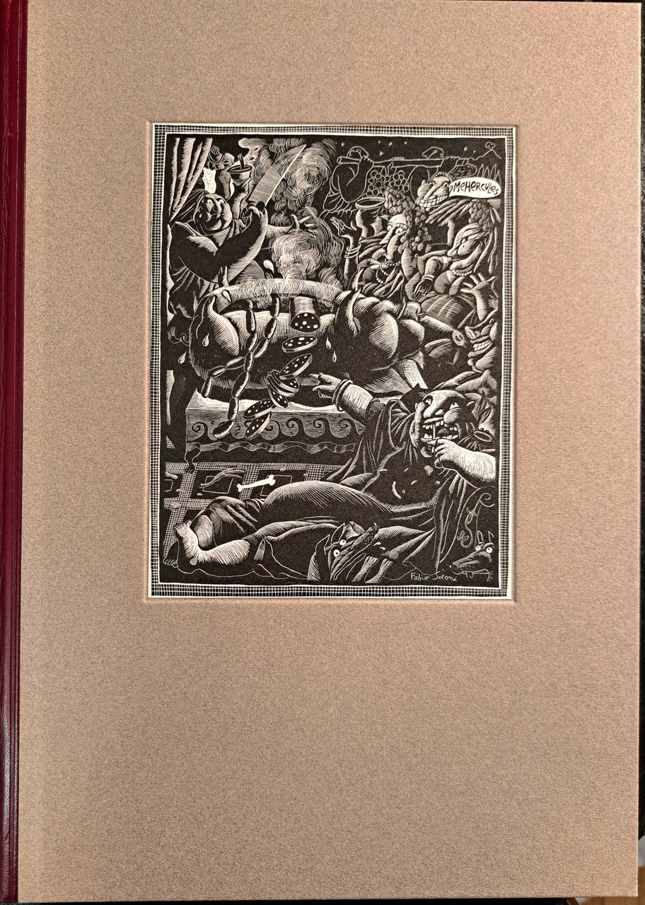 In 4°, p. 109(5). Traduzione di Piero Cigada. Saggi introduttivi di M. Scognamiglio e A. Torno. Sei belle tavole xilografiche di Fabio Sironi, due a piena pagina, firmate dall'Artista. Testo latino, in italiano a fronte. Tiratura di 170 esemplari. Legatura editoriale in mezza pelle. Xilografia al piatto anteriore. Cofanetto. Allo stato di nuovo.