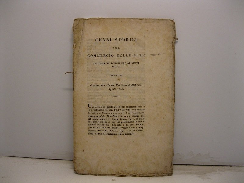 Cenni storici sul commercio delle sete dai tempi piu' remoti fino ai nostri giorni LEG. CON: Cenni su le qualita', e sul commercio delle sete d'Italia, di Francia e del Bengala Estratti dagli Annali Universali di Statistica