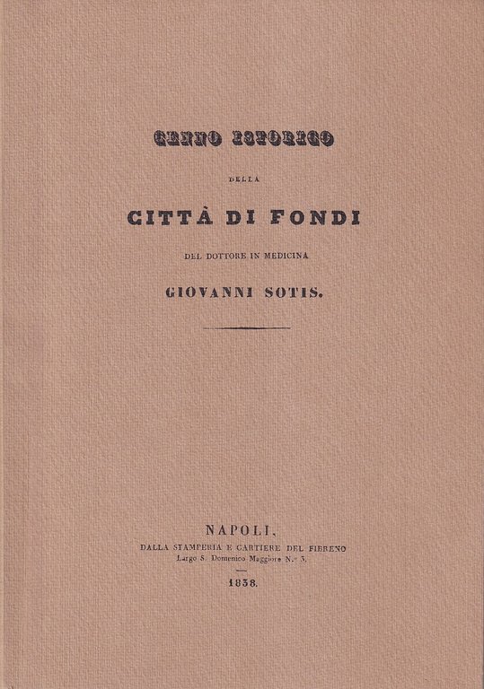 Cenno istorico della Città di Fondi | Livres anciens et modernes | Sotis, Giovanni