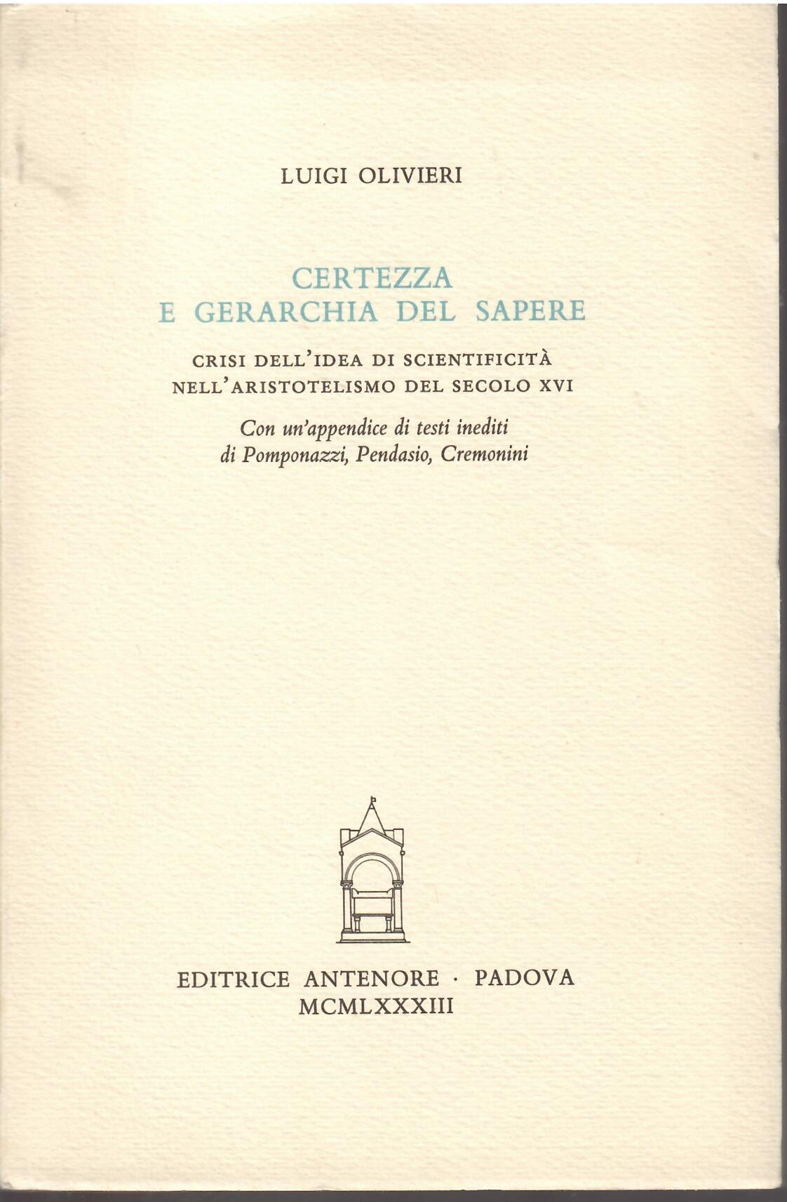CERTEZZA E GERARCHIA DEL SAPERE - CRISI DELL'IDEA DI SCIENTIFICITA' NELL'ARISTOTELISMO DEL SECOLO XVI | Livres anciens et modernes | Luigi Olivieri