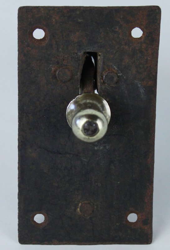 (Codice ZZ/0878) Misure piastra cm 8X4,5. Lunghezza della leva cm 8. Segni di ruggine, ma ottimo e funzionante. ~~~ SPEDIZIONE IN ITALIA SEMPRE TRACCIATA