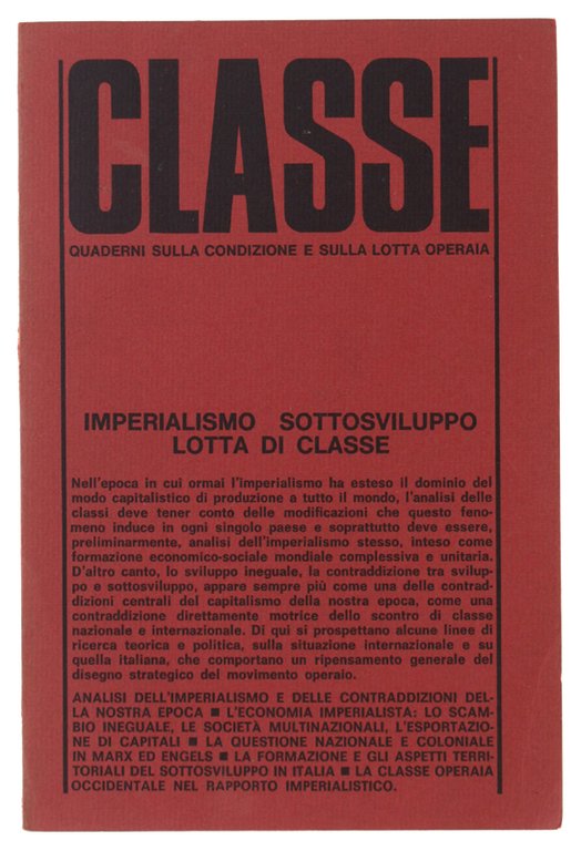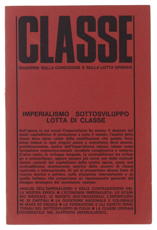 CLASSE. Quaderni sulla condizione e sulla lotta operaia - N. 6: IMPERIALISMO SOTTOSVILUPPO LOTTA DI CLASSE | Livres anciens et modernes | Autori Vari